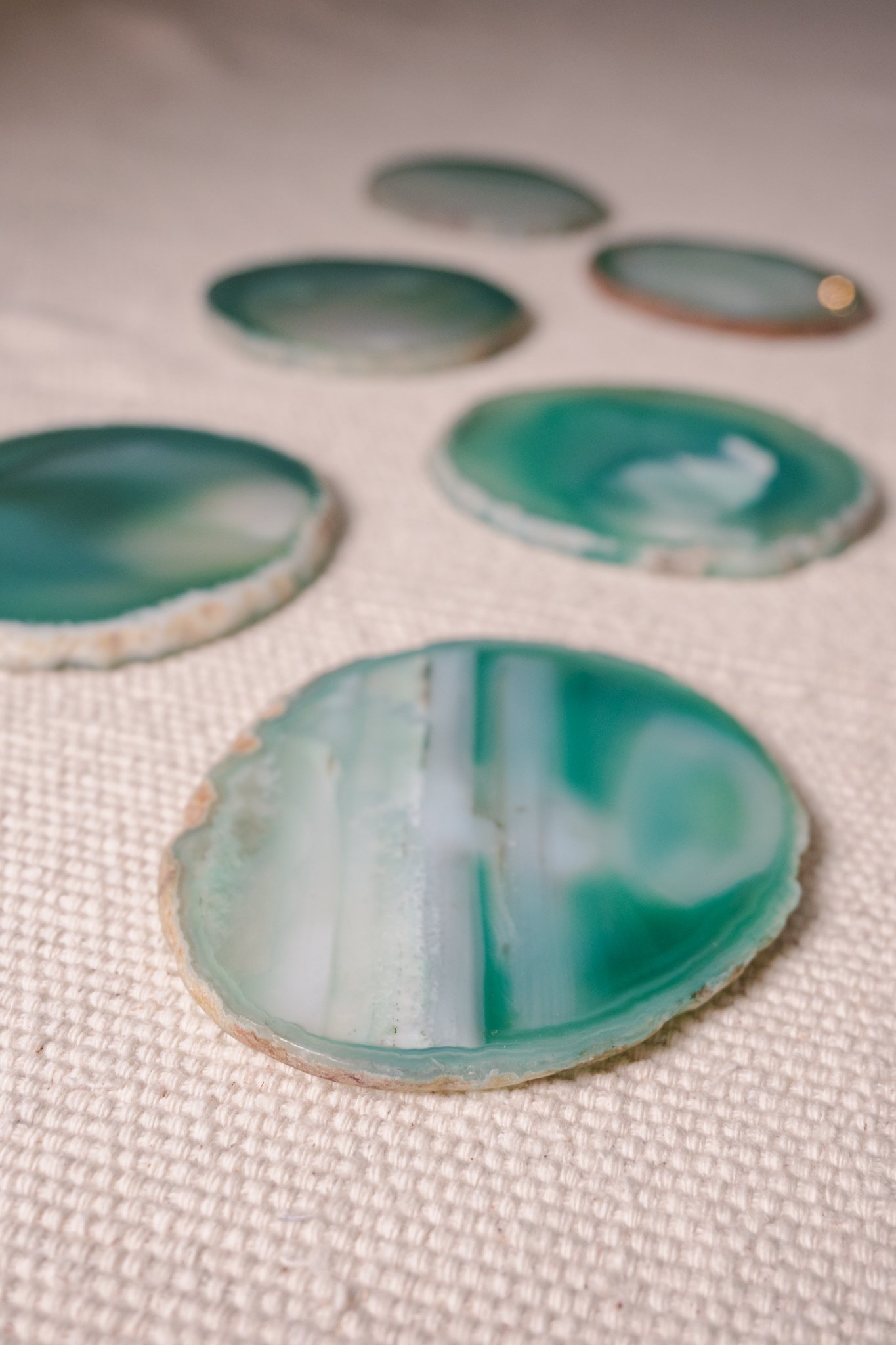 O Conjunto com 6 Porta-Copos Rústico em Pedra Ágata Verde transforma o simples ato de servir em um gesto de elegância e conexão com a natureza. Cada conjunto reflete a beleza bruta da Terra lapidada com delicadeza. As pedras de ágata verde revelam desenhos internos que lembram anéis de crescimento, formados ao longo de milhares de anos.