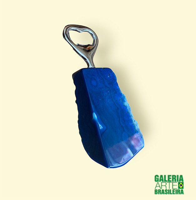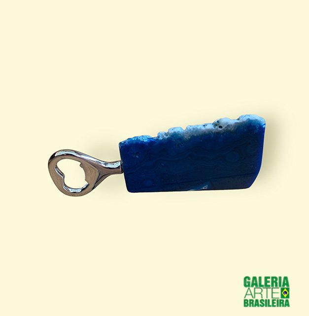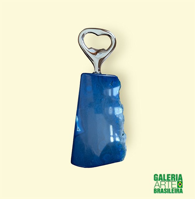 Abridor Azul De Garrafa Rústico, com um acabamento impecável e feito com pedras brasileiras. Uma ótima opção para presentar e compor a sua mesa com um toque brasileiro.