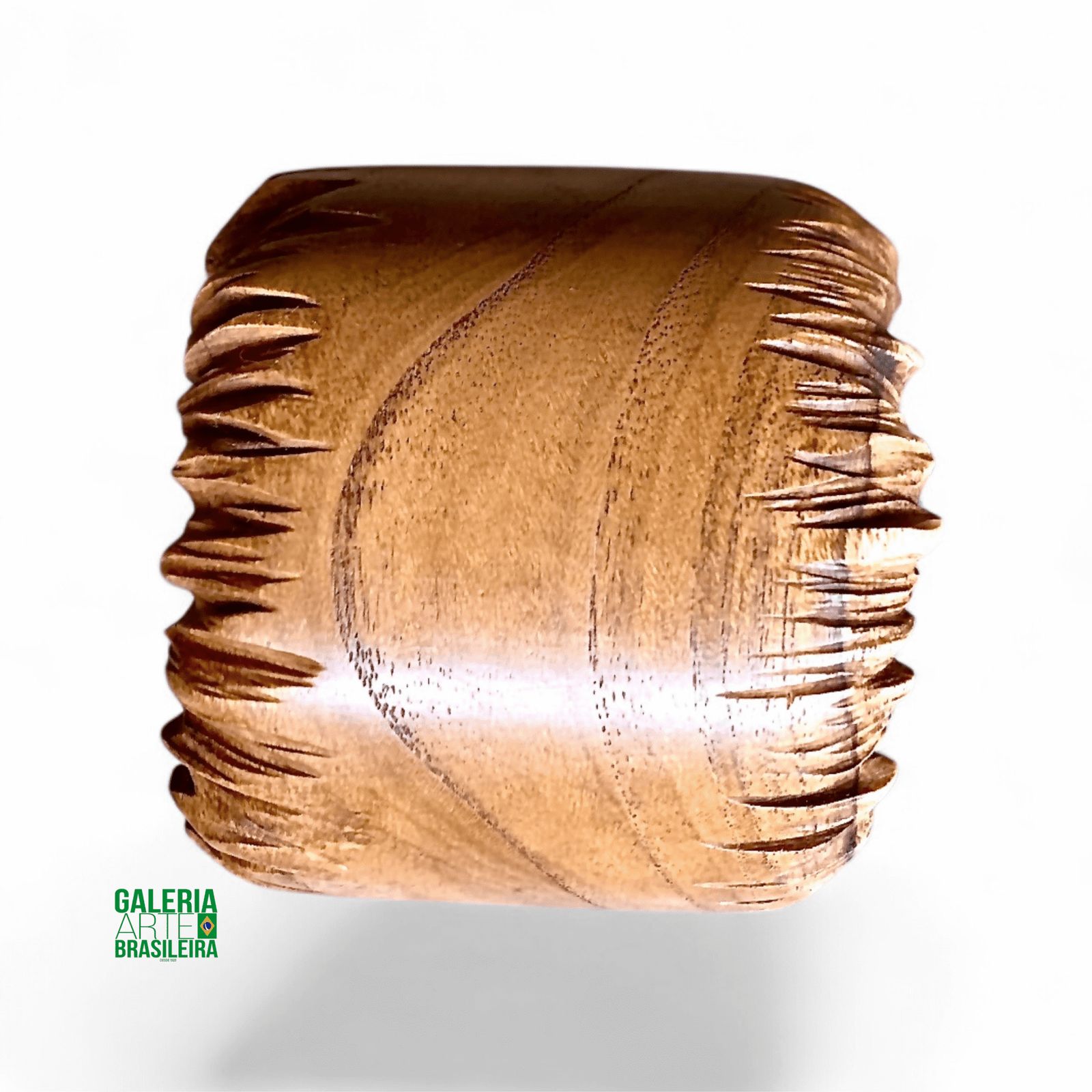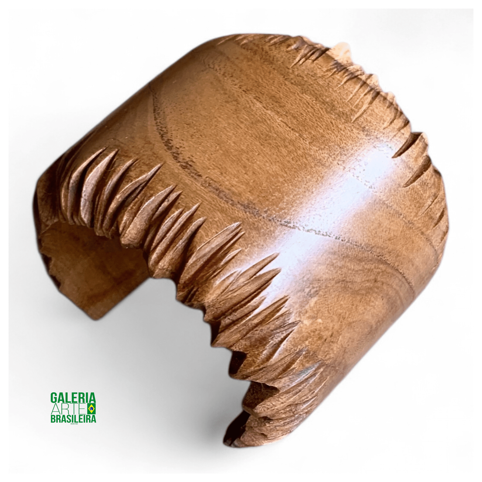 Bracelete esculpido a mão pelo nosso mestre Eugênio. Possui superfície lisa com as extremidades com texturas serrilhadas. Perfeito para transformar qualquer look!