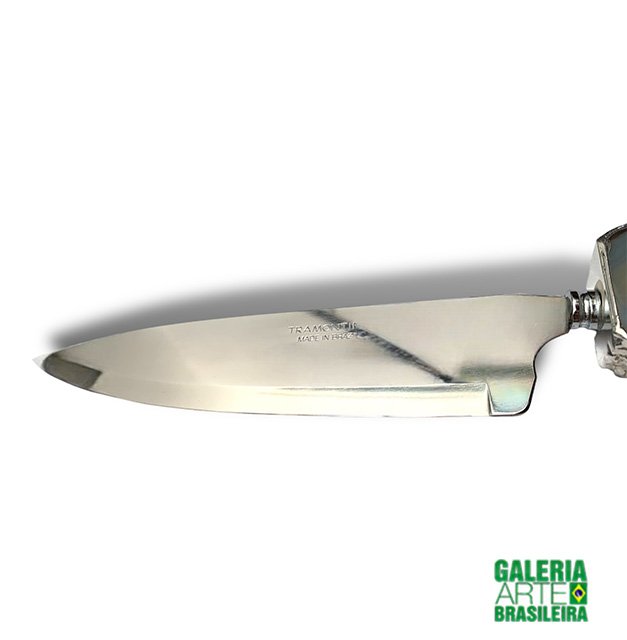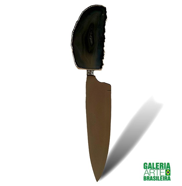 Faca Tramontina tradicional com o cabo feito da Pedra de Ágata Azul cristalizada com borda natural e banho de prata.