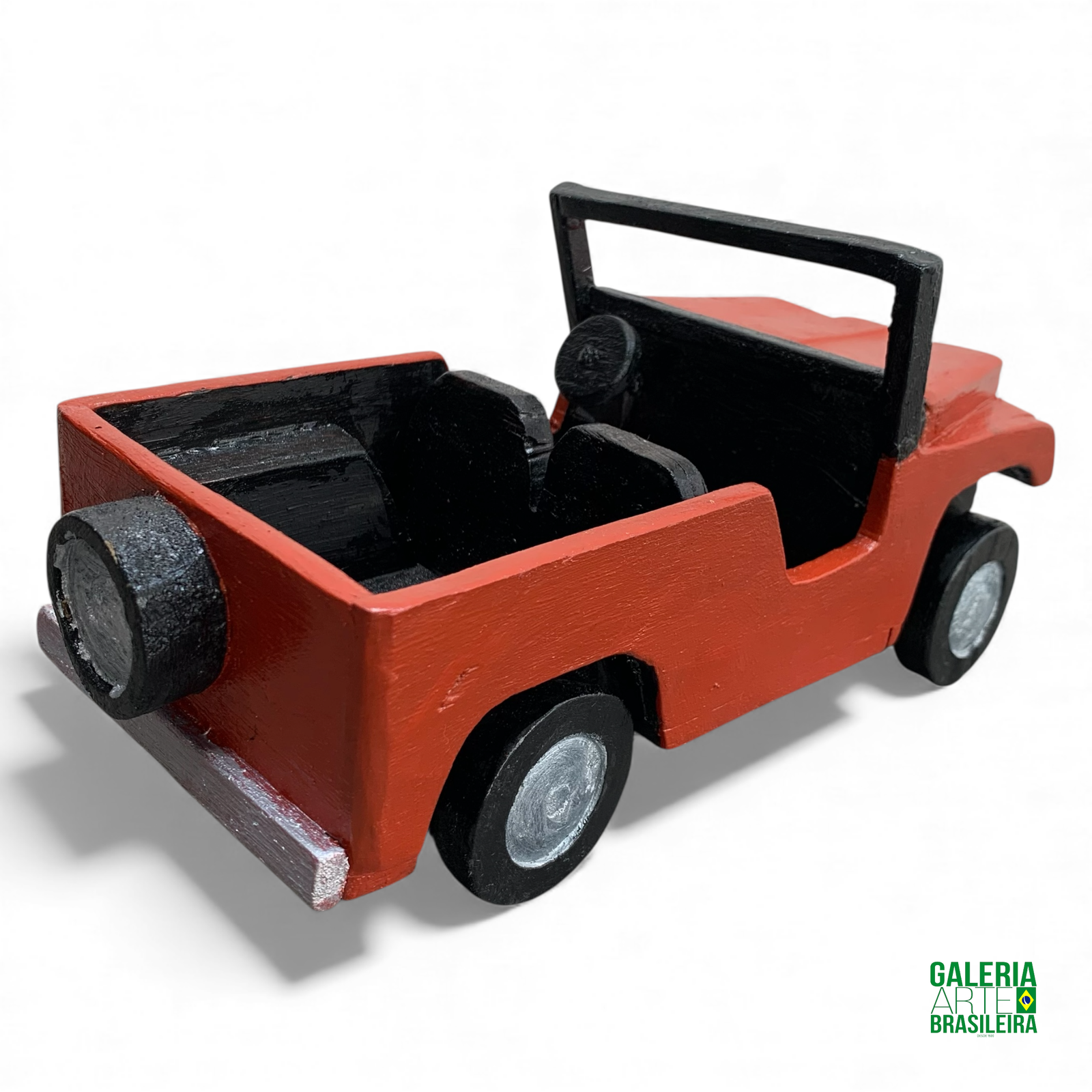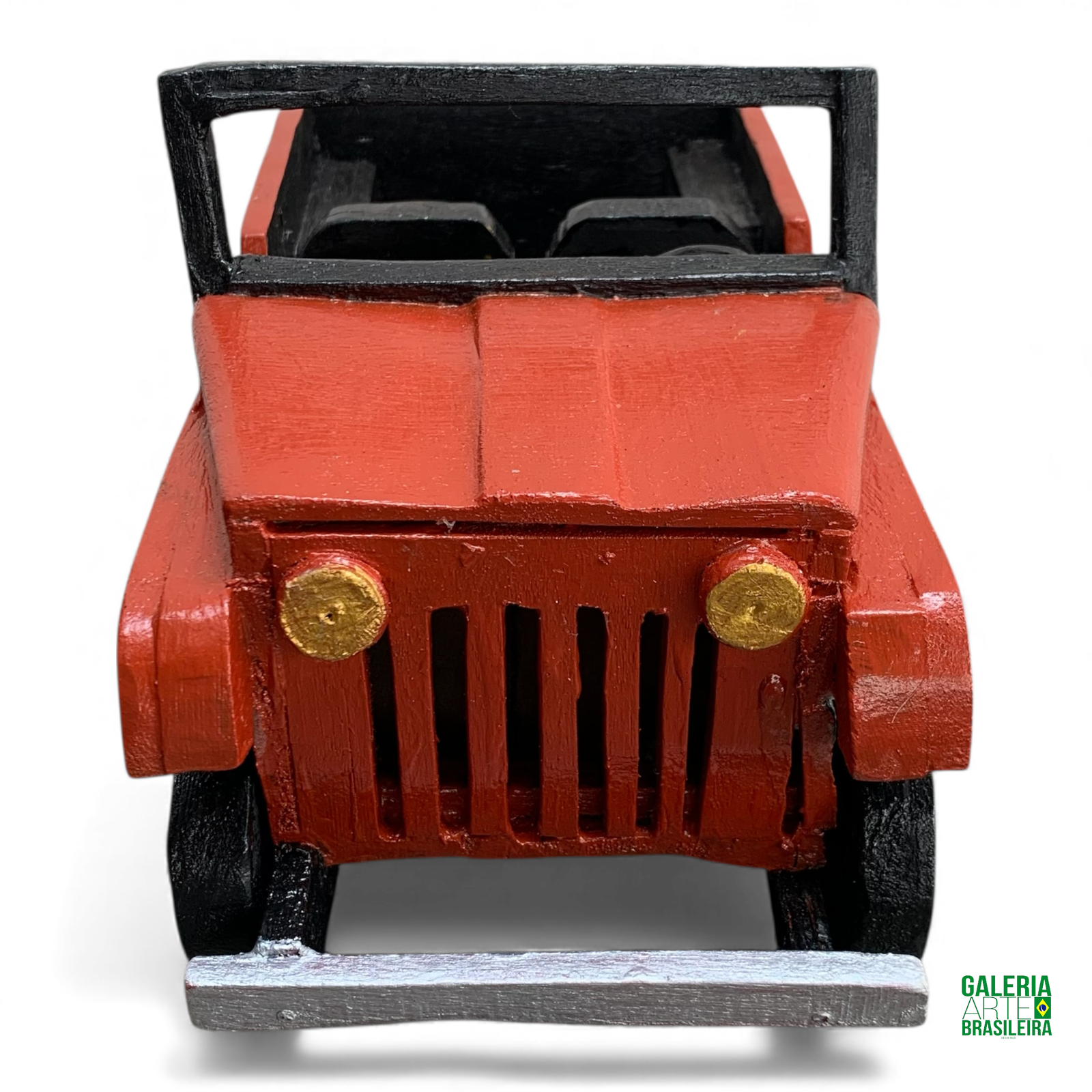 Jipe esculpido em madeira, com acabamento rústico e cheio de detalhes que destacam o trabalho artesanal. Ideal para decorar, colecionar ou presentear, adicionando personalidade e autenticidade a qualquer ambiente.