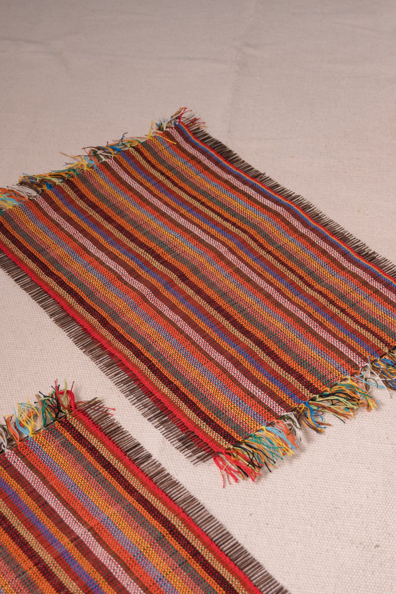 O jogo americano delimita o espaço de cada pessoa à mesa, apoia pratos, talheres e copos, e ajuda a evitar manchas, riscos ou contato direto do calor com a mesa. Neste par, a piaçava cria uma superfície estável, com aspecto rústico e natural, adequada tanto para o uso diário quanto para ocasiões especiais. A trama aparente evidencia o trabalho artesanal e a origem vegetal do material, trazendo um elemento da natureza para o ambiente.