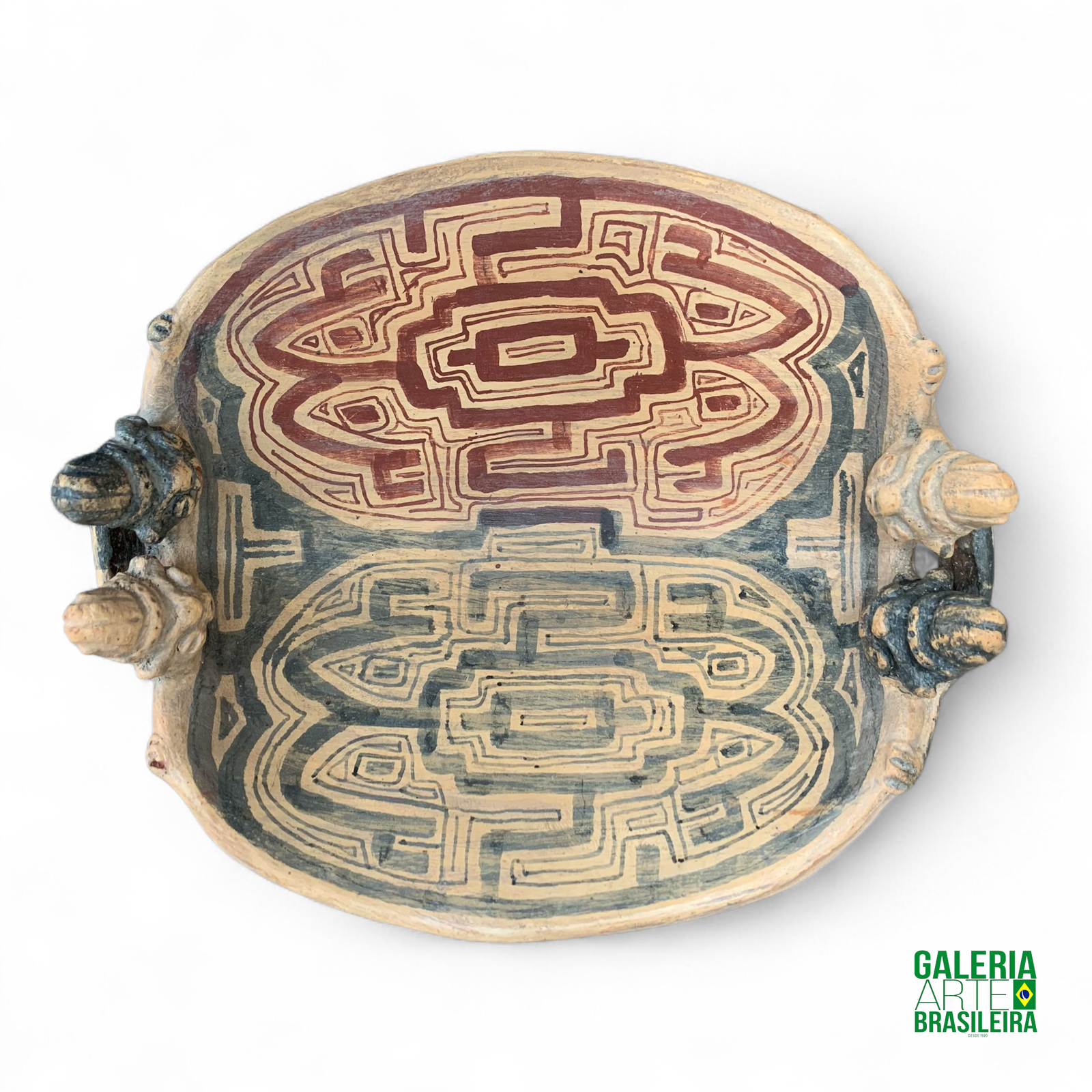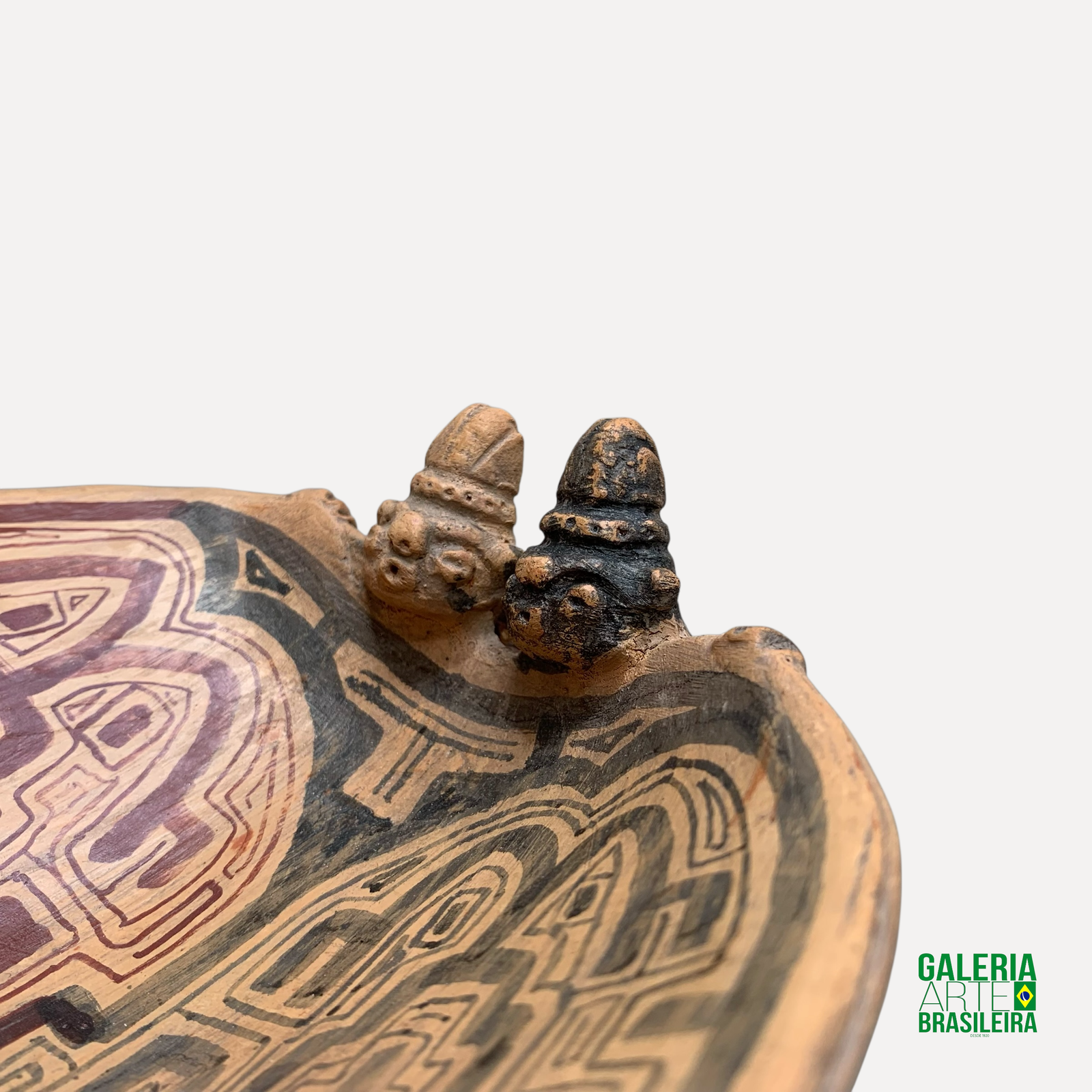 Tigela de cerâmica tapajônica com duas cabeças — uma peça única que carrega tradição e beleza. Seu acabamento artesanal e os detalhes simbólicos tornam este objeto não apenas funcional, mas também uma obra de arte para decorar e valorizar qualquer ambiente.