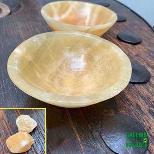Tigela esculpida em pedra calcita laranja.