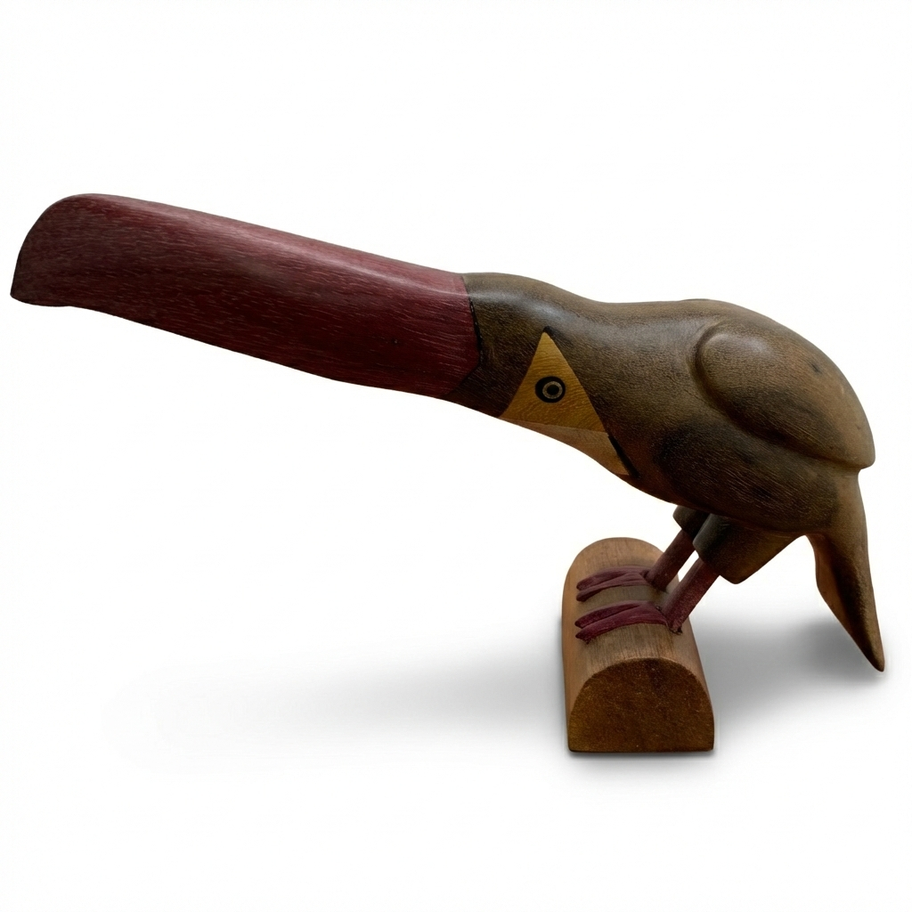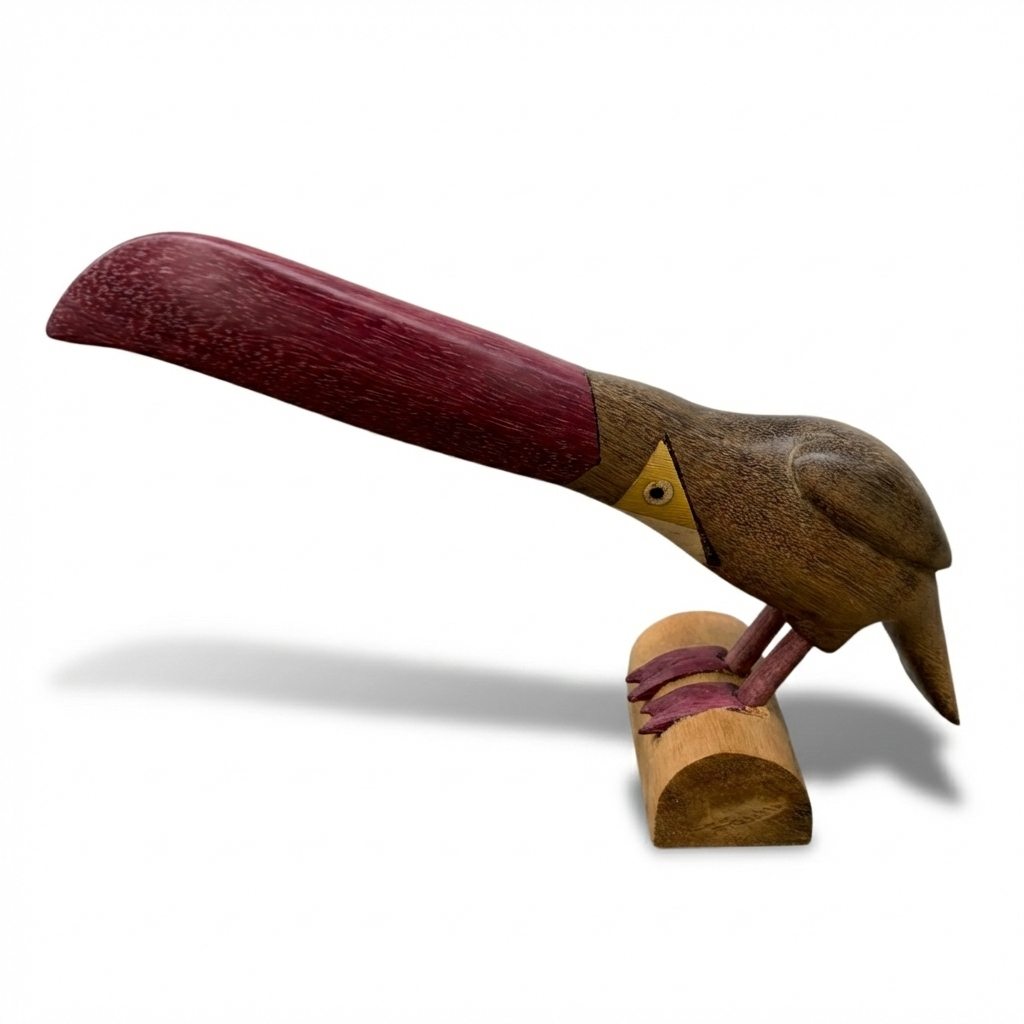 Perfeito para compor estantes, mesas de centro ou escritórios, este tucano é mais do que um objeto de decoração; é uma celebração da arte em madeira e da biodiversidade tropical. Ideal para compor sua casa ou para presentear.