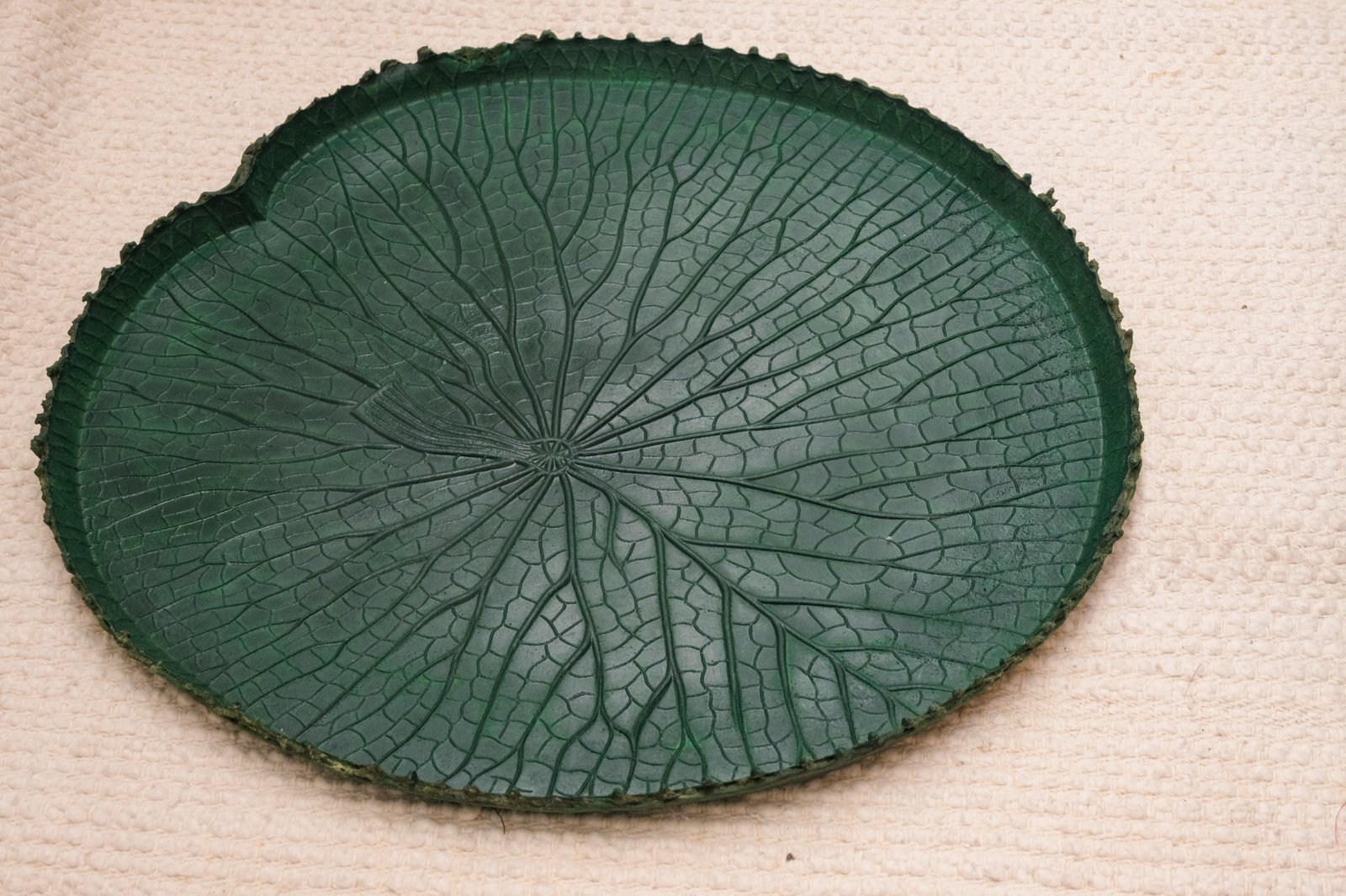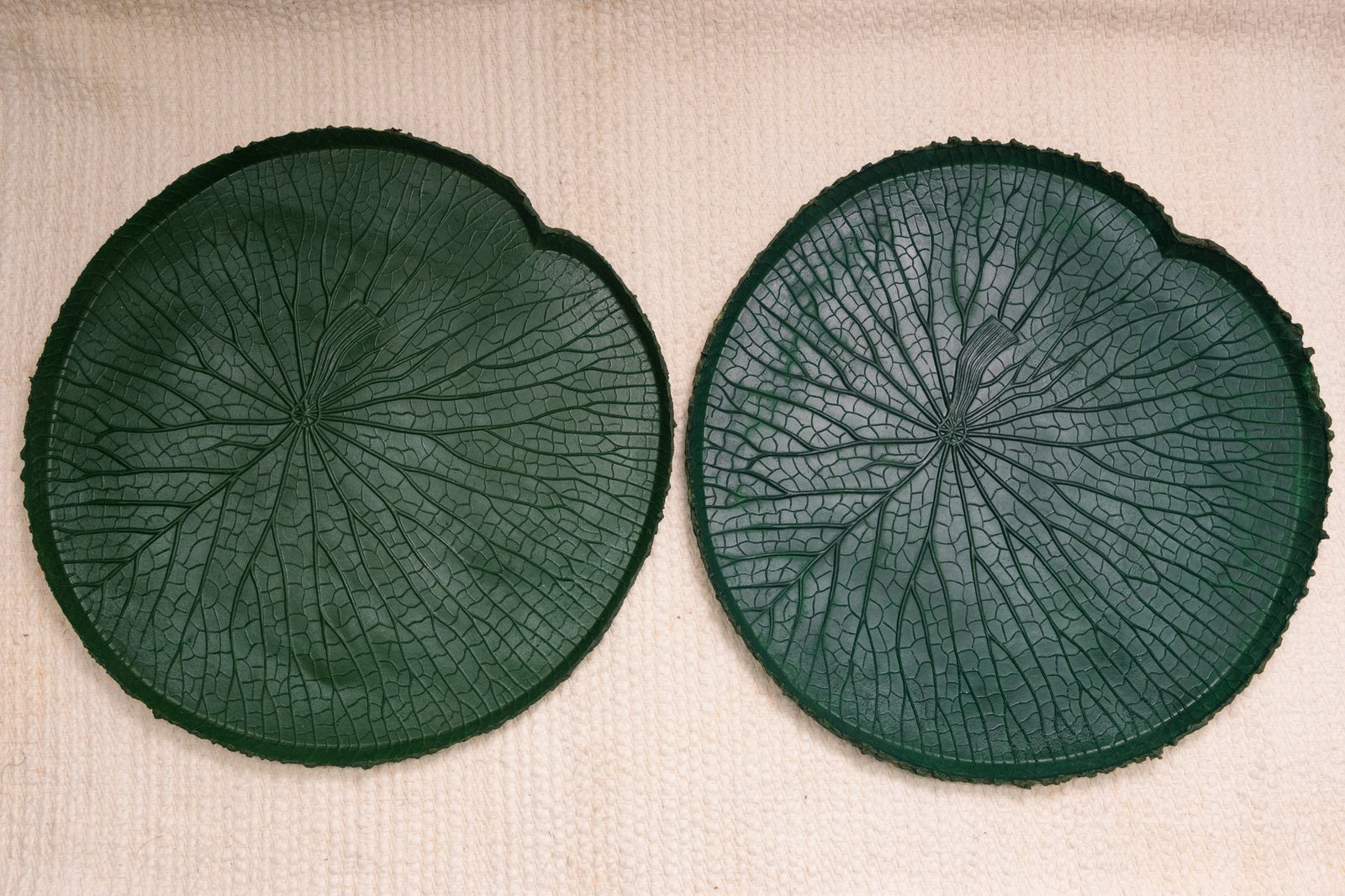 A Vitória-Régia em Látex reproduz com precisão o formato e as texturas da planta aquática amazônica. A peça tem coloração verde escura uniforme, aspecto realista e superfície detalhada que imita as nervuras e a leve curvatura da folha natural. O látex confere resistência e flexibilidade, permitindo manuseio fácil e longa durabilidade. É ideal para composições decorativas em mesas, vitrines, cenários fotográficos, projetos de paisagismo, ambientações temáticas e exposições culturais. Profissionais e instituições utilizam a peça em eventos, cenografias teatrais e projetos educativos sobre a flora brasileira. A manutenção é simples: basta limpar com pano úmido e evitar exposição direta ao sol por longos períodos.