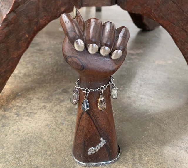 Estas peças com moedas, asa de borboletas, figa em jacarandá, que hoje fazem parte do acervo da GAB, eram vendidas na loja da Barão de Itapetininga .